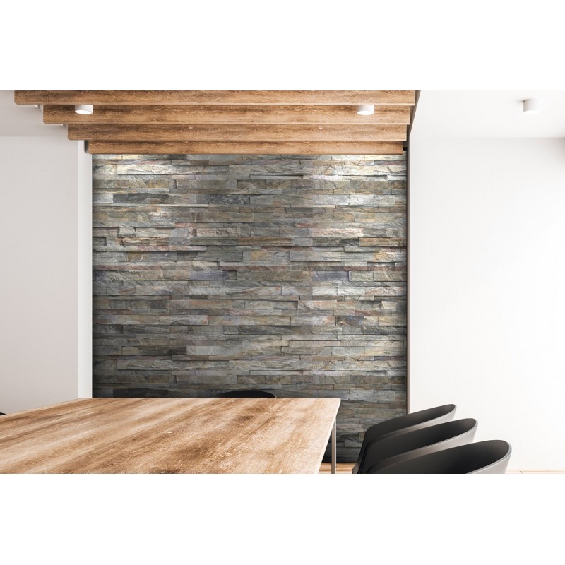 STN282 self-adhesive stone facings, 100% natural stone surfaces, harder and more resistant than slate tiles, reinforced with polyester resin and applied on double-sided foam tape.