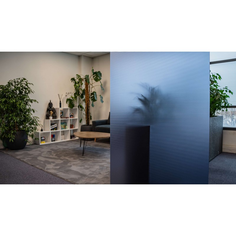 Reflectiv offers a range of striped films that alter perspective and lighting effects. These films create a textured glass effect while providing varying degrees of privacy depending on the selected model. The STR 10 is a blue variant of the STR 05. The striped bands are 0.5 cm wide.