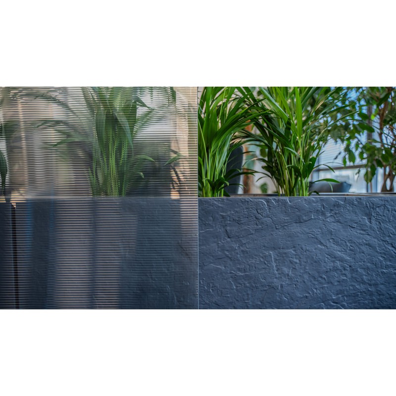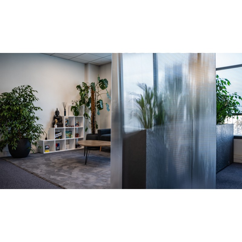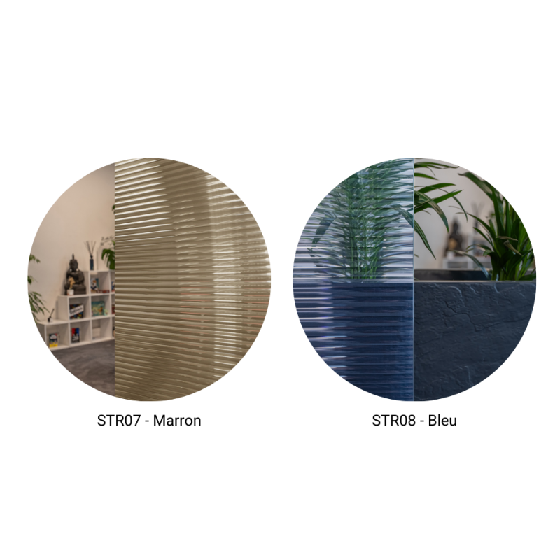 Réflectiv te ofrece su gama de películas estriadas, que modifican el punto de vista y los efectos de iluminación. De este modo, permiten proporcionar un efecto de vidrio en relieve, al tiempo que proporcionan más o menos privacidad según el modelo elegido.