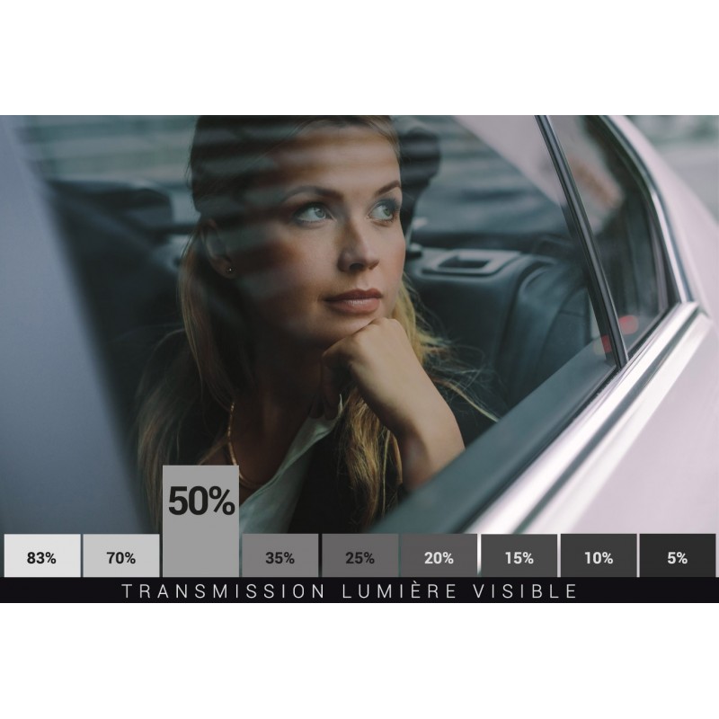 Film teinté pour voitures couleur gris clair transparent - Transmission d'environ 50 % de lumière visible