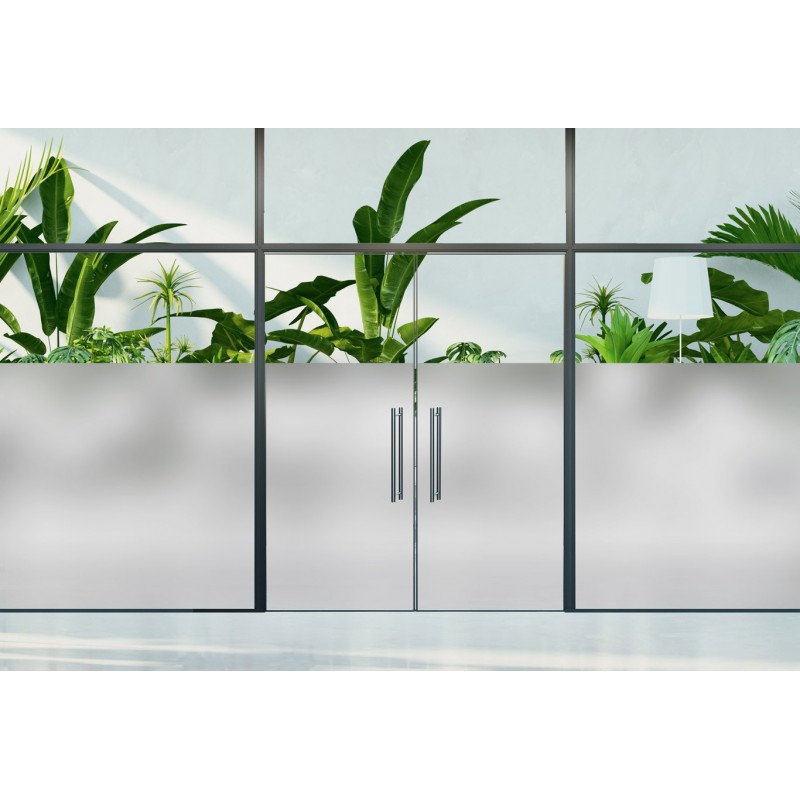 Ce film adhésif transforme en verre dépoli blanc tous les vitrages. Il occulte partiellement la vue mais laisse passer la lumière, permettant ainsi de se protéger des regards indiscrets. INT402 est un dépoli gris clair pailleté imprimable.