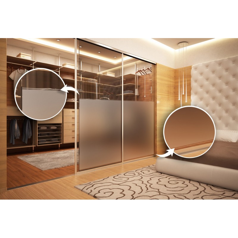 Les films décoratifs permettent de personnaliser une fenêtre, une cloison ou un meuble en verre tout en préservant l’intimité. Ces films adoucissent la lumière sans réduire la luminosité. Ce film vous propose comme motif une large bande dépolie entourée de 2 autres bandes de 2 mm.