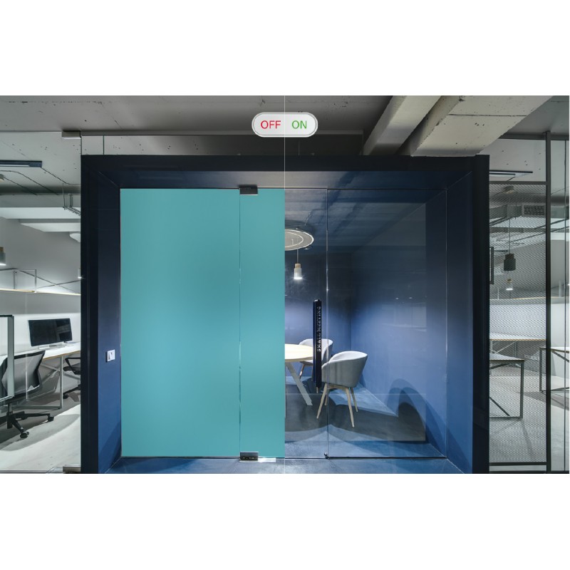 Particulièrement utilisé pour des cloisons de bureaux, salles de conférences, hôpitaux, cliniques, villas de luxe, chambres, hôtels et restaurants. L'orientation des particules des cristaux liquides permet de donner l'aspect opaque ou transparent (Ne pas exposer en façade).