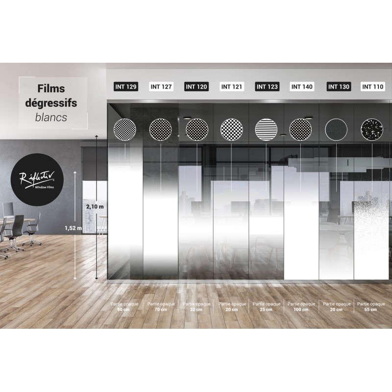 Le pellicole degressive decorative possono essere utilizzate per personalizzare e nascondere un'area specifica di una finestra, di una parete o di un mobile con vetro. Queste pellicole attenuano la luce senza ridurre la luminosità.