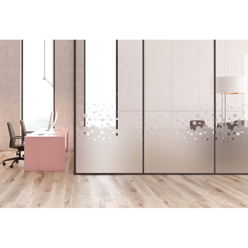 Le pellicole degressive decorative possono essere utilizzate per personalizzare e nascondere un'area specifica di una finestra, di una parete o di un mobile con vetro. Queste pellicole attenuano la luce senza ridurre la luminosità.